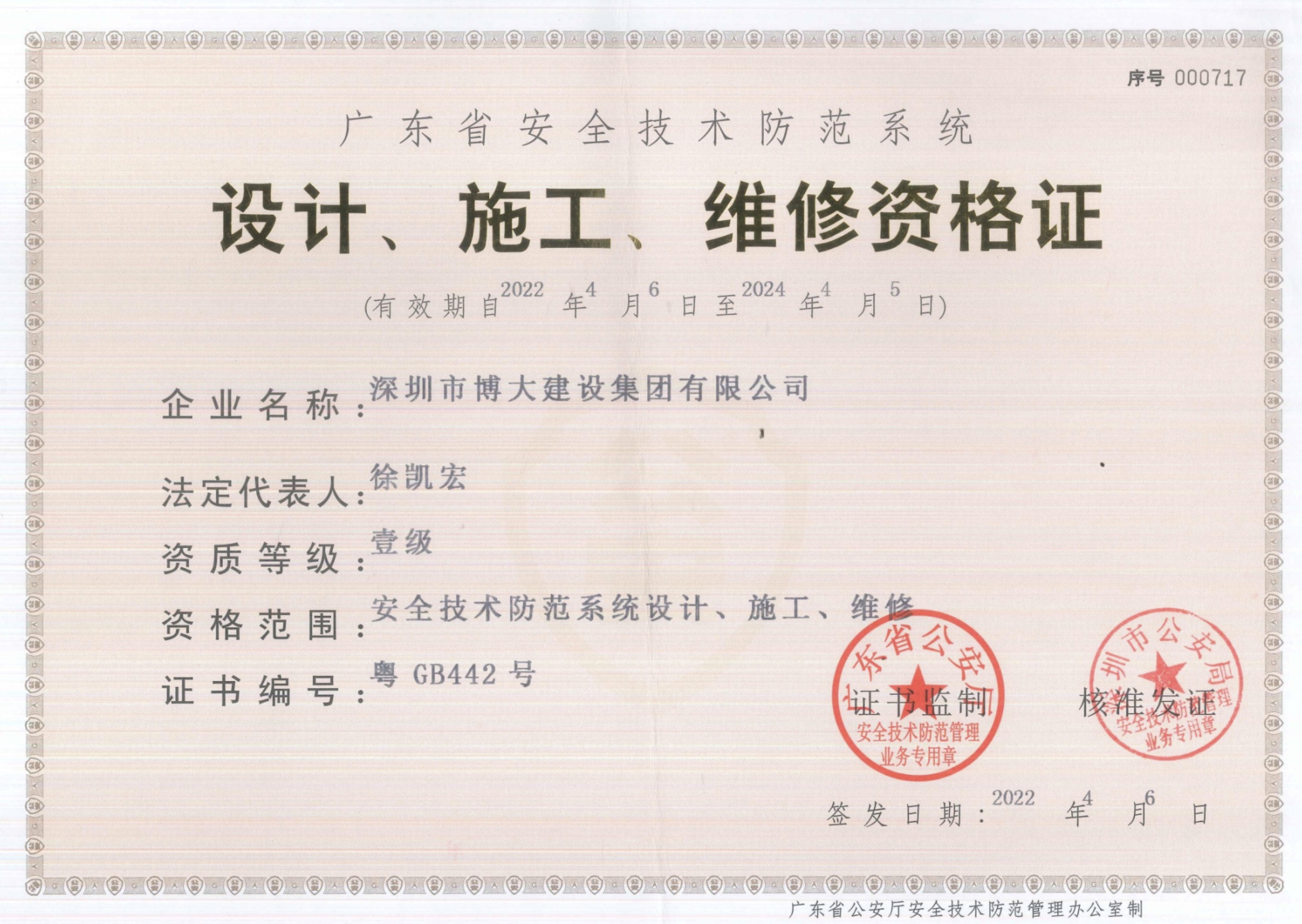 安全技術(shù)防范系統(tǒng)設(shè)計(jì)、施工、維修資格證