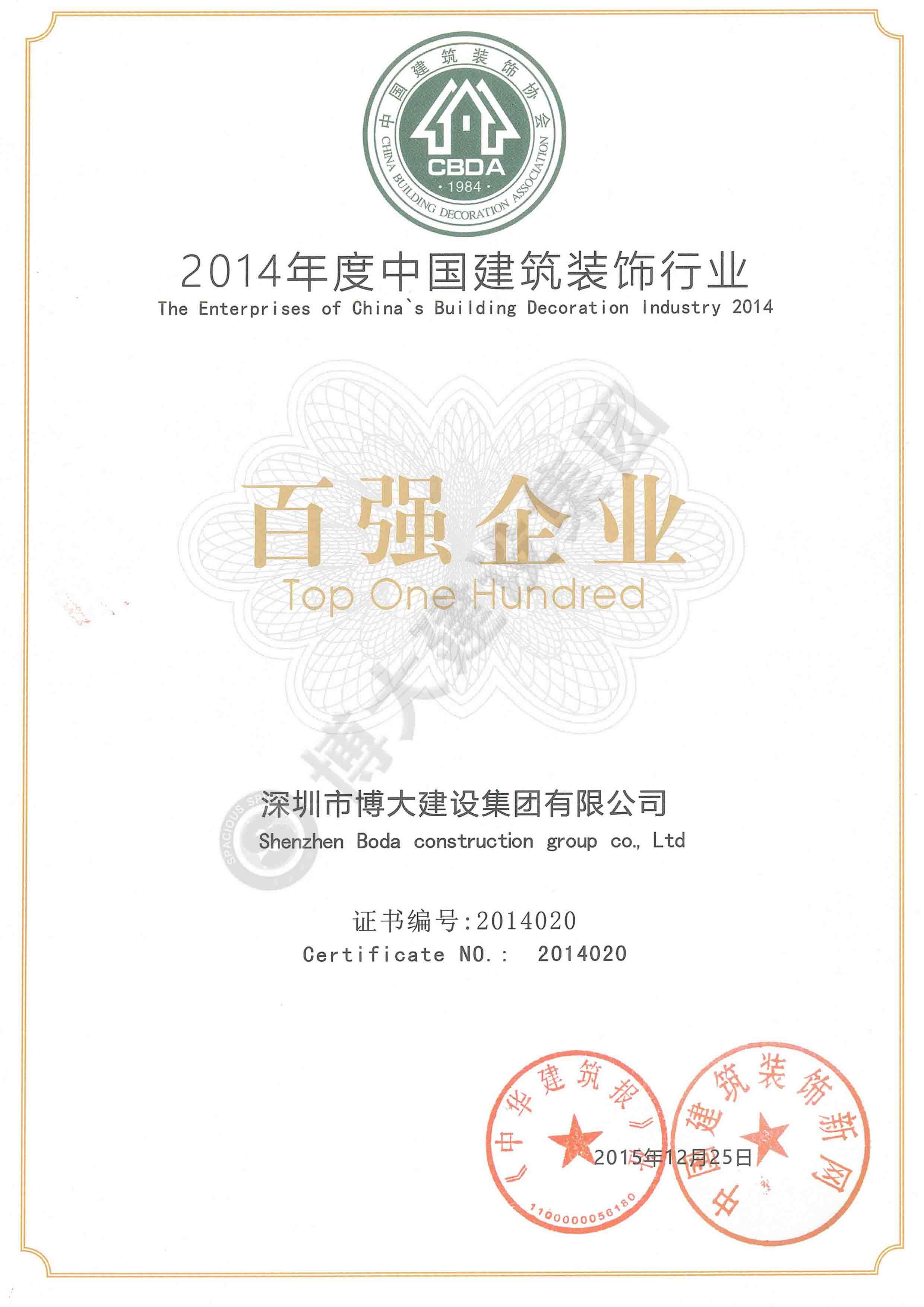 2014年度中國(guó)建筑裝飾百?gòu)?qiáng)企業(yè)