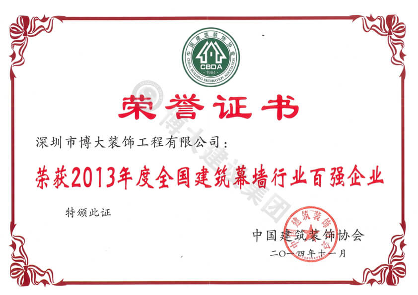 2013年度中國建筑幕墻行業(yè)百強(qiáng)