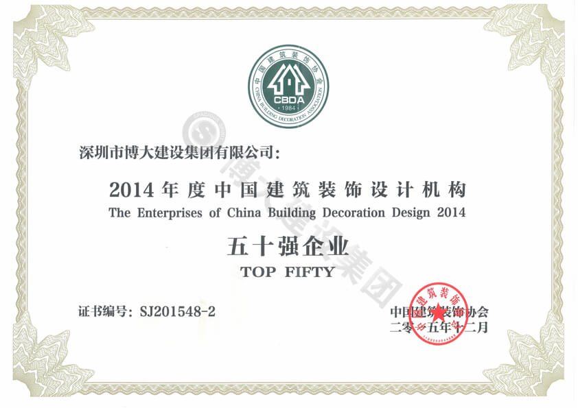 2014年度中國建筑裝飾設(shè)計(jì)機(jī)構(gòu)50強(qiáng)企業(yè)
