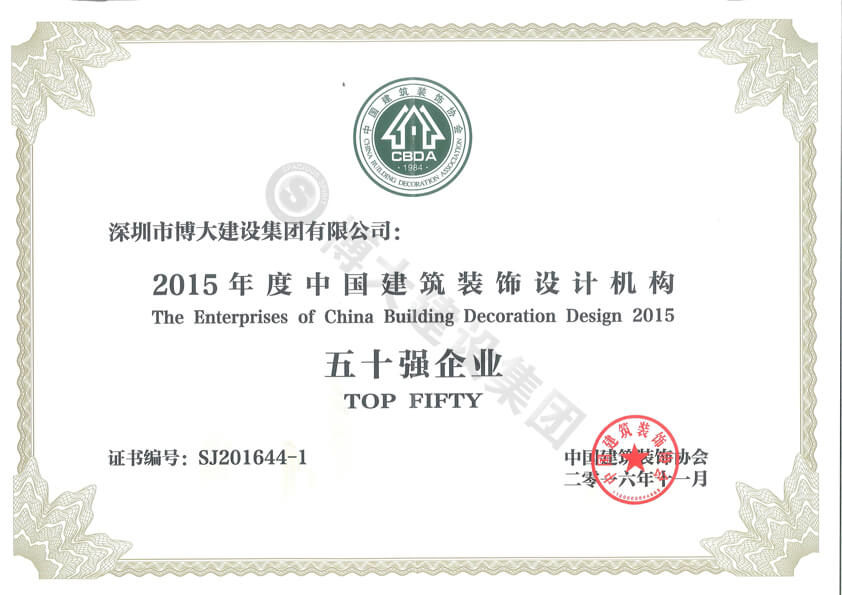 2015年度中國建筑裝飾設(shè)計(jì)機(jī)構(gòu)50強(qiáng)企業(yè)