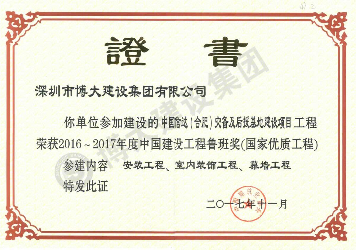 魯班獎(中國信達合肥災(zāi)備及后援基地建設(shè)項目)