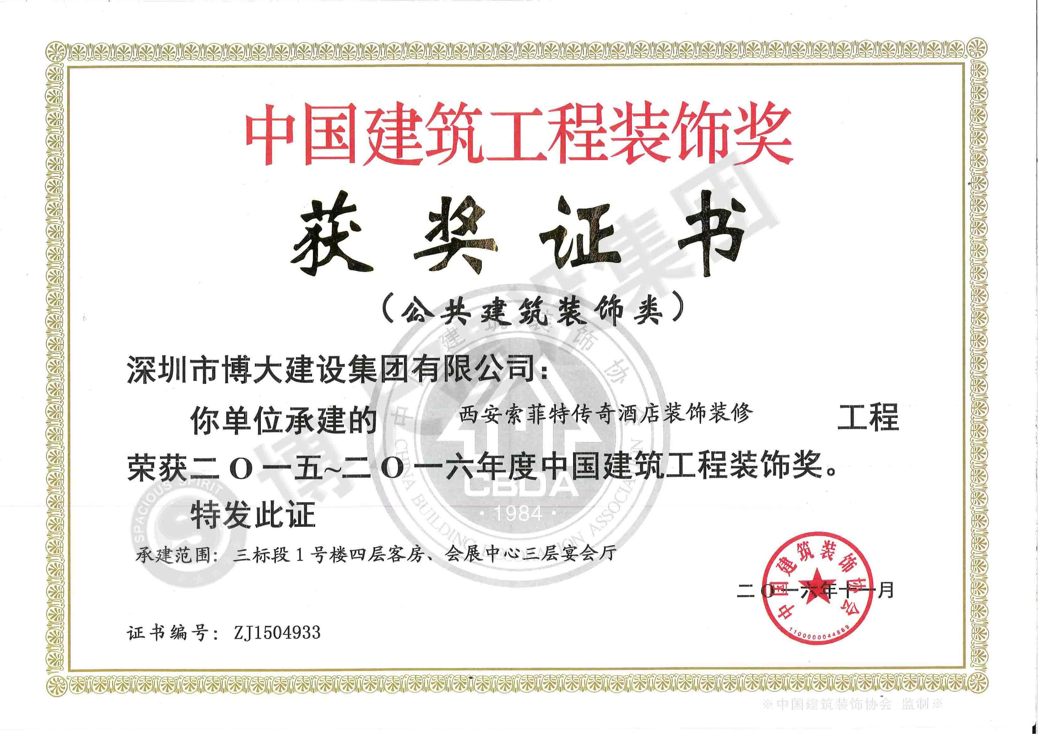 中國建筑工程裝飾獎(jiǎng)(索菲特酒店室內(nèi)精裝修工程-裝飾)