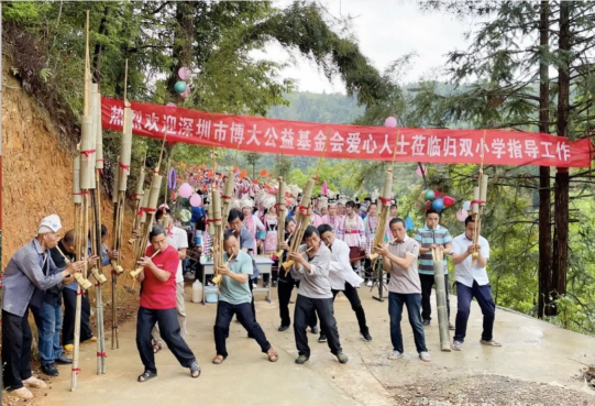 4月21日至22日,深圳市博大公益基金會理事長、集團(tuán)董事長張炳來前往貴州省黎平縣實地考察擬捐建學(xué)校場地,并回訪2021年交付當(dāng)?shù)卣褂玫膭?wù)孖小學(xué)。當(dāng)?shù)厝罕娸d歌載舞,熱烈歡迎理事長張炳來的到來。