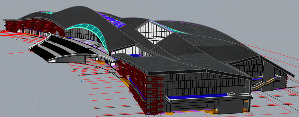 本工程結構設計造型較復雜、幕墻體系層次復雜,博大配備高素質的幕墻深化設計團隊,應用三維建模及BIM管理平臺進行幕墻系統(tǒng)空間碰撞檢測,全力保證施工質量和效率。
