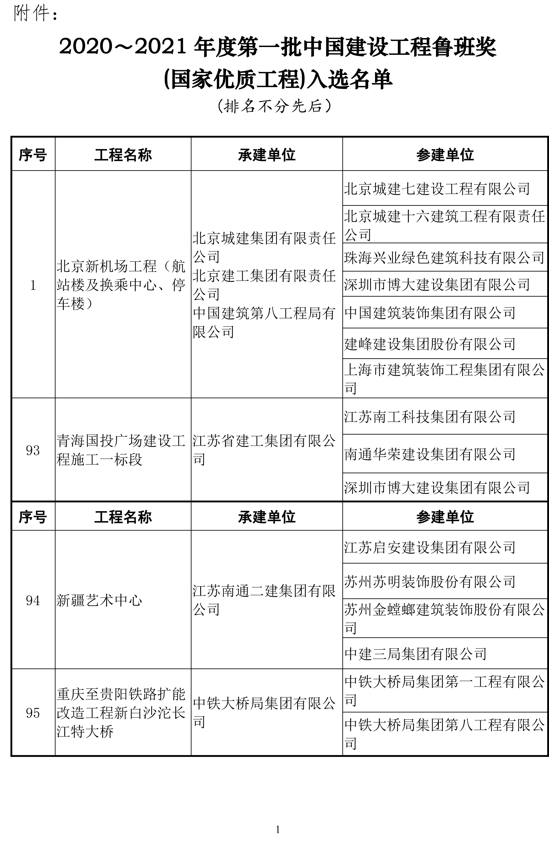 11月30日,根據(jù)中國(guó)建筑業(yè)協(xié)會(huì)的公示文件,2020~2021年度第一批中國(guó)建設(shè)工程魯班獎(jiǎng)(國(guó)家優(yōu)質(zhì)工程)申報(bào)、復(fù)查、評(píng)審、審定工作已結(jié)束,博大建設(shè)集團(tuán)參建的北京大興國(guó)際機(jī)場(chǎng)、青海國(guó)投廣場(chǎng)兩個(gè)項(xiàng)目榮獲國(guó)家建筑行業(yè)工程質(zhì)量最高榮譽(yù)——中國(guó)建設(shè)工程魯班獎(jiǎng)(國(guó)家優(yōu)質(zhì)工程)。