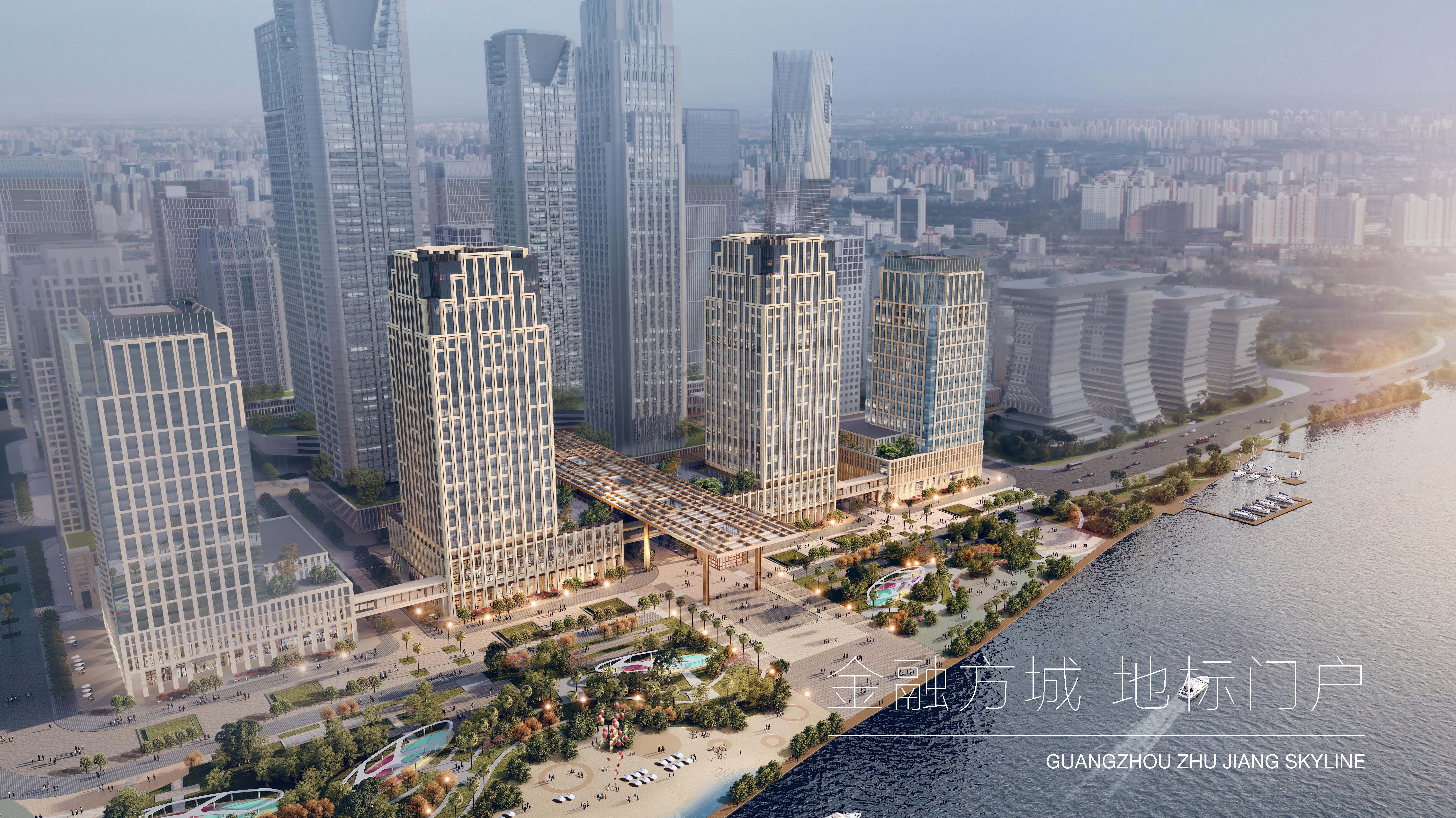 項(xiàng)目位于珠江北岸,緊鄰珠江新城中央商務(wù)區(qū),與琶洲國際會(huì)展中心隔江相望,是廣州三大CBD之一的國際金融城。以嶺南傳統(tǒng)騎樓的手法延續(xù)城市文脈,打造了一個(gè)類似都市大平臺(tái)功能的相互連接的裙房,并在大平臺(tái)上設(shè)置了一系列的空中花園、城市觀賞連廊,從而塑造了廣州濱江的門戶形象。