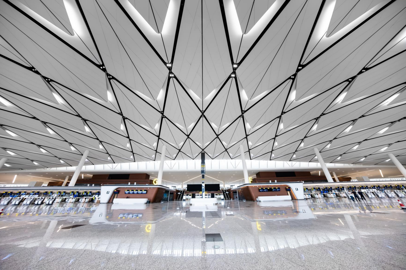 成都天府國際機(jī)場(chǎng)為4F級(jí)國際機(jī)場(chǎng)、是絲綢之路經(jīng)濟(jì)帶中等級(jí)最高的國際航空樞紐之一,中國首個(gè)“手拉手式”航站樓,總面積71萬㎡,每座航站樓有3萬㎡的羽毛狀吊頂與“太陽神鳥”的整體造型呼應(yīng) 。航站樓共設(shè)置83個(gè)廊橋機(jī)位,能夠滿足2025年2800萬人次國內(nèi)旅客吞吐量和1200萬人次國際旅客吞吐量的需求。預(yù)計(jì)本月開通運(yùn)營。