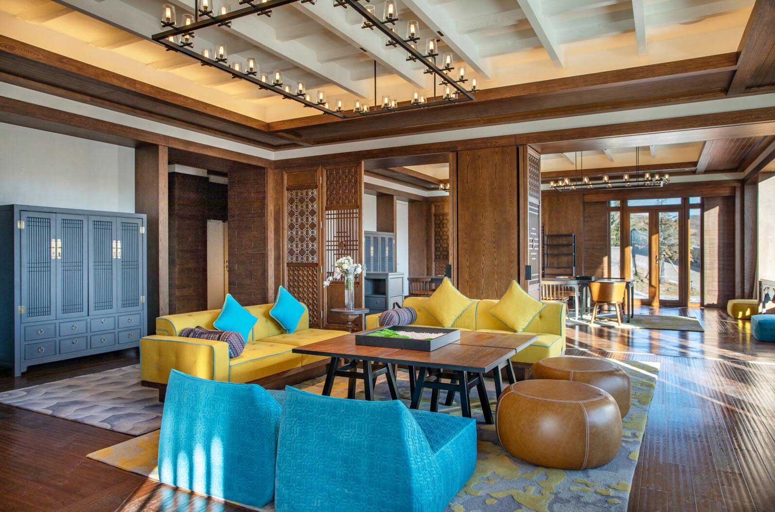 酒店設(shè)計(jì)由備受贊譽(yù)的泰國設(shè)計(jì)事務(wù)所P49 Deesign操刀,以尋找夢想中的“香巴拉”“月光城”為靈感素材,用藏式傳統(tǒng)風(fēng)格進(jìn)行現(xiàn)代簡約素凈演繹,為賓客呈現(xiàn)高原藏式鄰里文化。