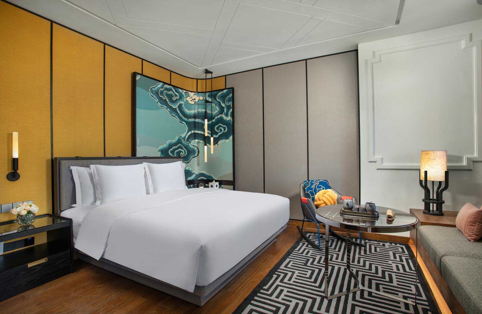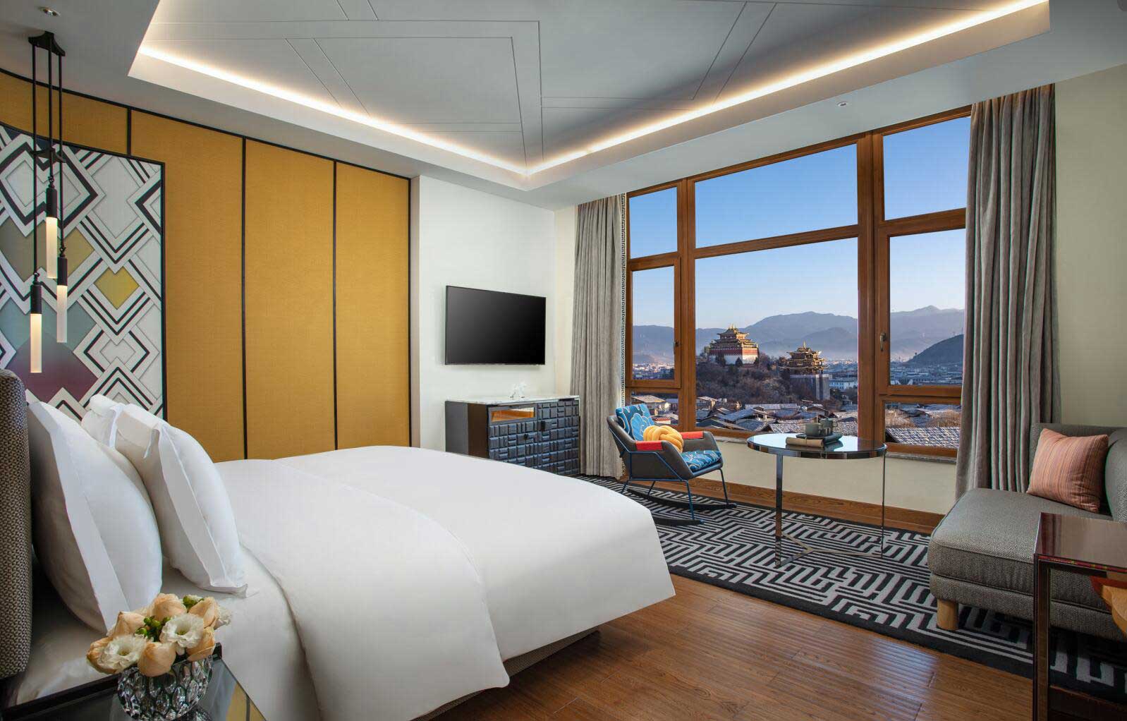 房間設(shè)計(jì)從藏地文化中汲取靈感,寫意回溯香格里拉鄰間故事,打造兼具民族風(fēng)韻和現(xiàn)代舒適的下榻空間,點(diǎn)綴精挑細(xì)選的工藝品及特色壁畫,房間的角落和細(xì)節(jié)處處可見充滿本地風(fēng)情的鄰間文化。開窗見景,入室賞藝,高品質(zhì)客房設(shè)施營造了引人入勝的旅居氛圍。