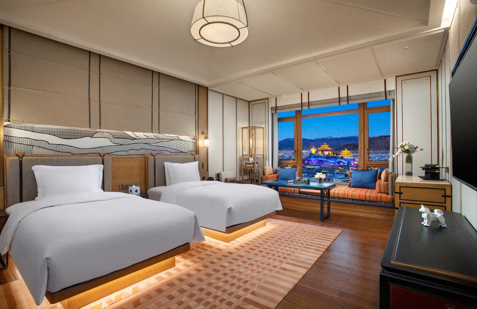 酒店共設(shè)99間“月光城”主題客房和3間自帶超大露臺的套房,精巧融合民族文化與國際品牌需要的舒適設(shè)計(jì),客房內(nèi)外藏地藝術(shù)與現(xiàn)代精雕細(xì)琢的工藝品、壁畫點(diǎn)綴其間,各處細(xì)節(jié)均體現(xiàn)了英迪格品牌所倡導(dǎo)的“鄰里文化”。各層不同客房設(shè)置的入戶庭院、露臺、陽臺,使人獨(dú)享私人靜謐空間。