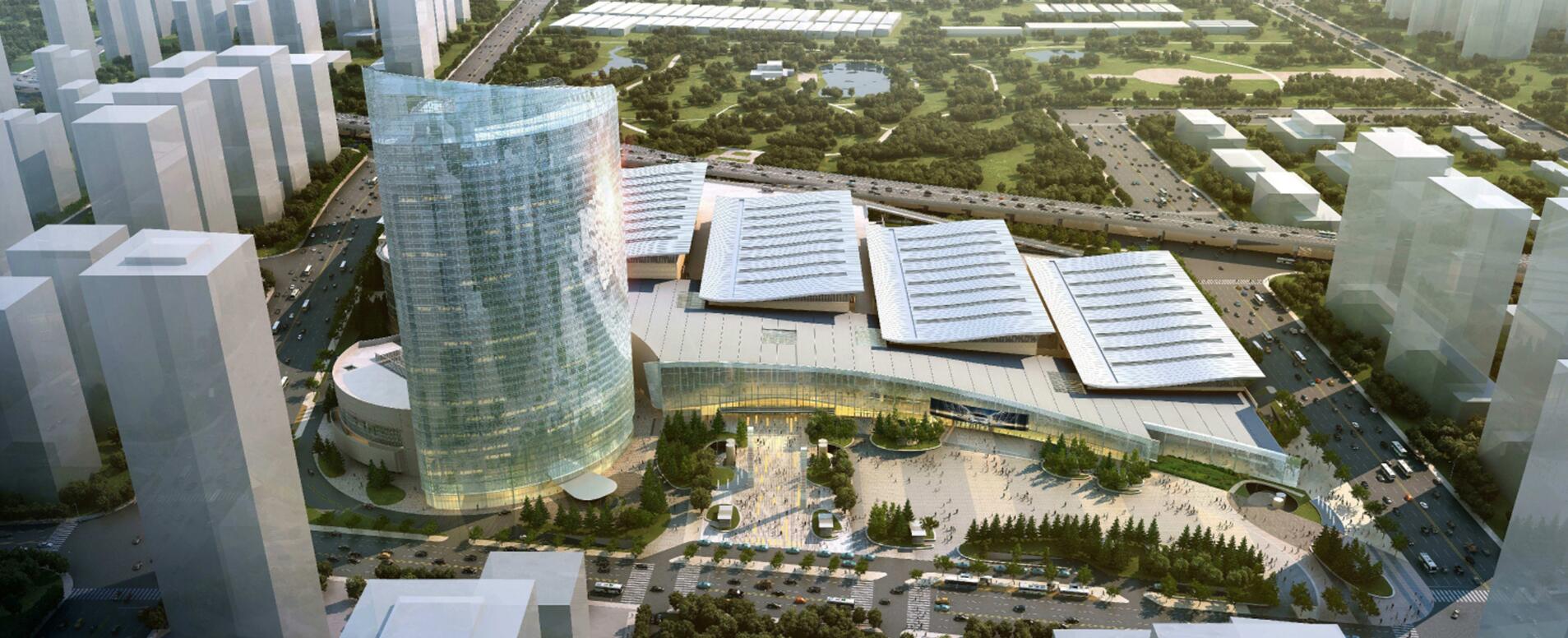 濟(jì)南西部會展中心位于濟(jì)南市槐蔭區(qū),濟(jì)南西部新城核心區(qū),東至二環(huán)西路、西至濱州路、南至日照路、北至威海路,交通便利。項(xiàng)目可規(guī)劃用地約332畝,總建設(shè)面積約55.5萬平方米,其中地上建筑面積約37.5萬平方米,地下建筑面積約18萬平方米。