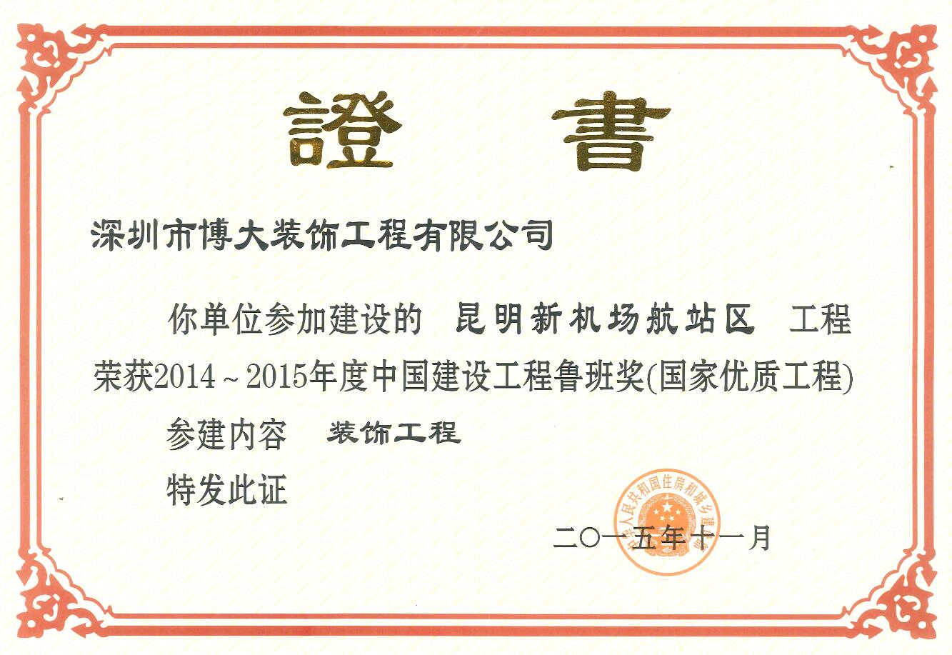 博大以精益求精的工匠精神成就大國(guó)品質(zhì),榮獲中國(guó)建筑裝飾最高獎(jiǎng)——魯班獎(jiǎng)、中國(guó)建筑裝飾工程獎(jiǎng),博大被云南省委、省政府授予“先進(jìn)集體嘉獎(jiǎng)”榮譽(yù)稱(chēng)號(hào)。